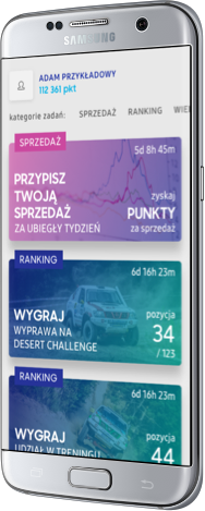 GRYWALIZACJAKażdy lubi wygrywać. Handlowcy rejestrują sprzedaż, czytają artykuły, rozwiązują quizy. Za każdą aktywność w Sales Games przyznawane są punkty. W każdej chwili mogą zobaczyć swoją pozycję w rankingu i podwoić wysiłki żeby wygrać!